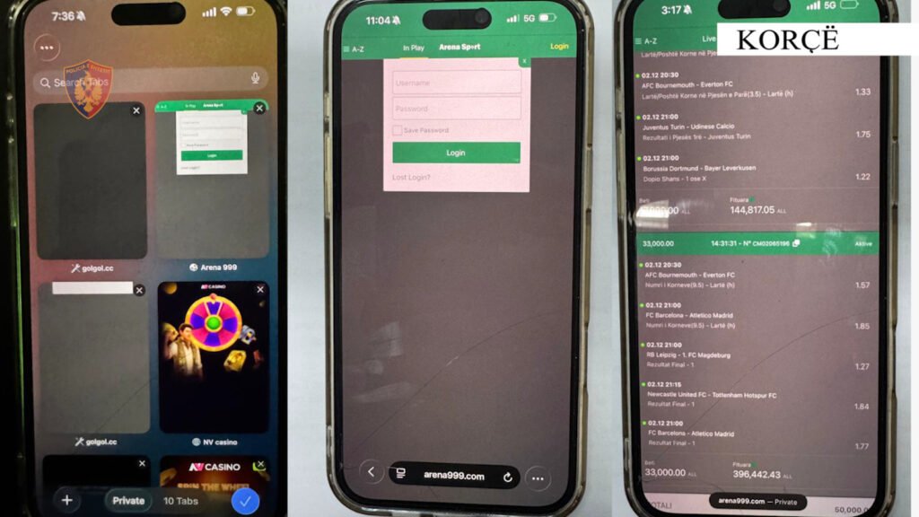 - U procedua penalisht shtetasi H. L., 30 vjeç, banues në Korçë, pasi në ambientet e lokalit ku ndodhej, gjatë këqyrjes së celularit të tij u konstatuan po ashtu faqe aktive për baste sportive.