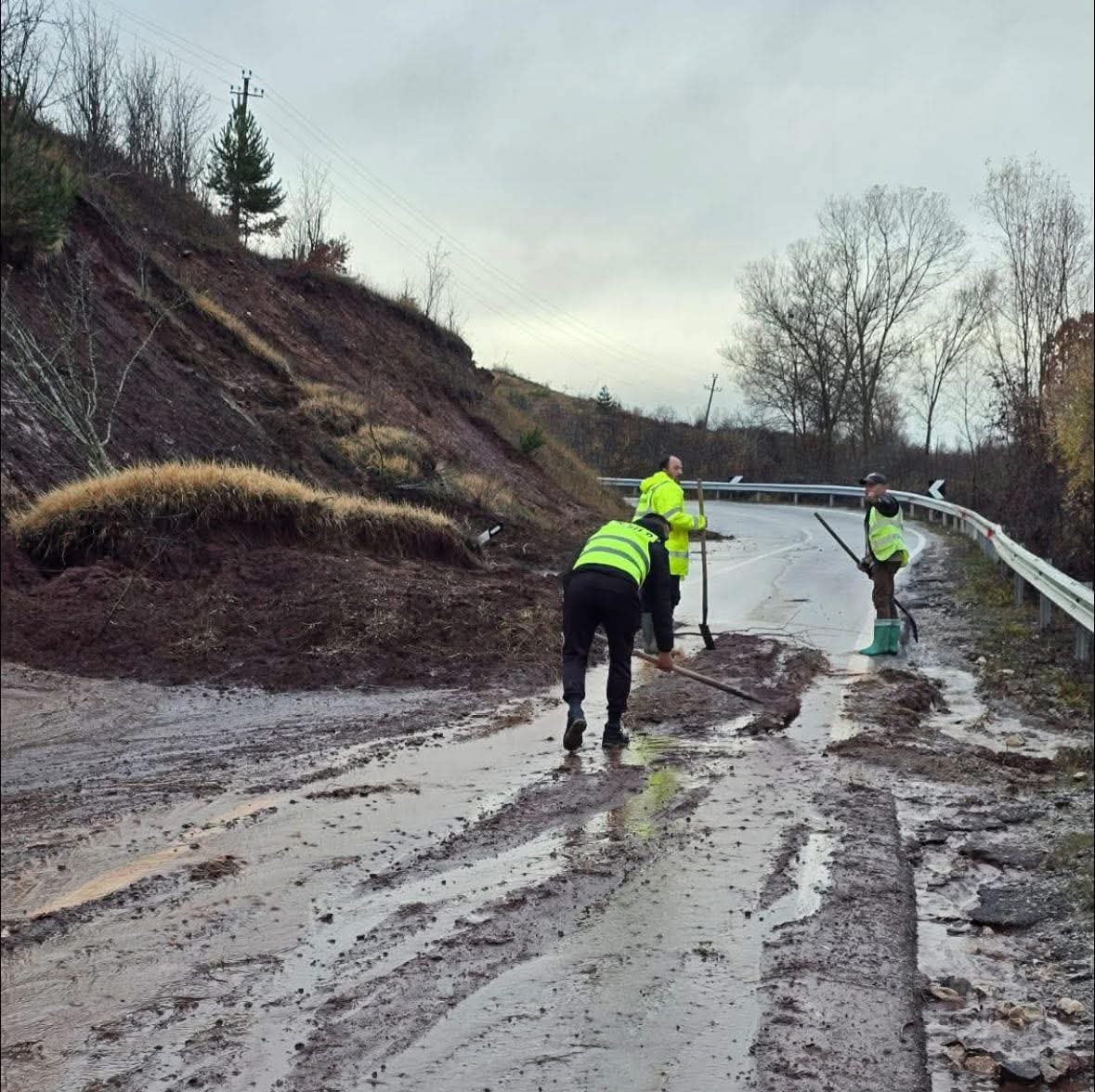 Në aksin Pogradec–Bucimas, pranë fshatit Gështenjas, ka ceduar rreth 50 metra nga korsia e biçikletave.
