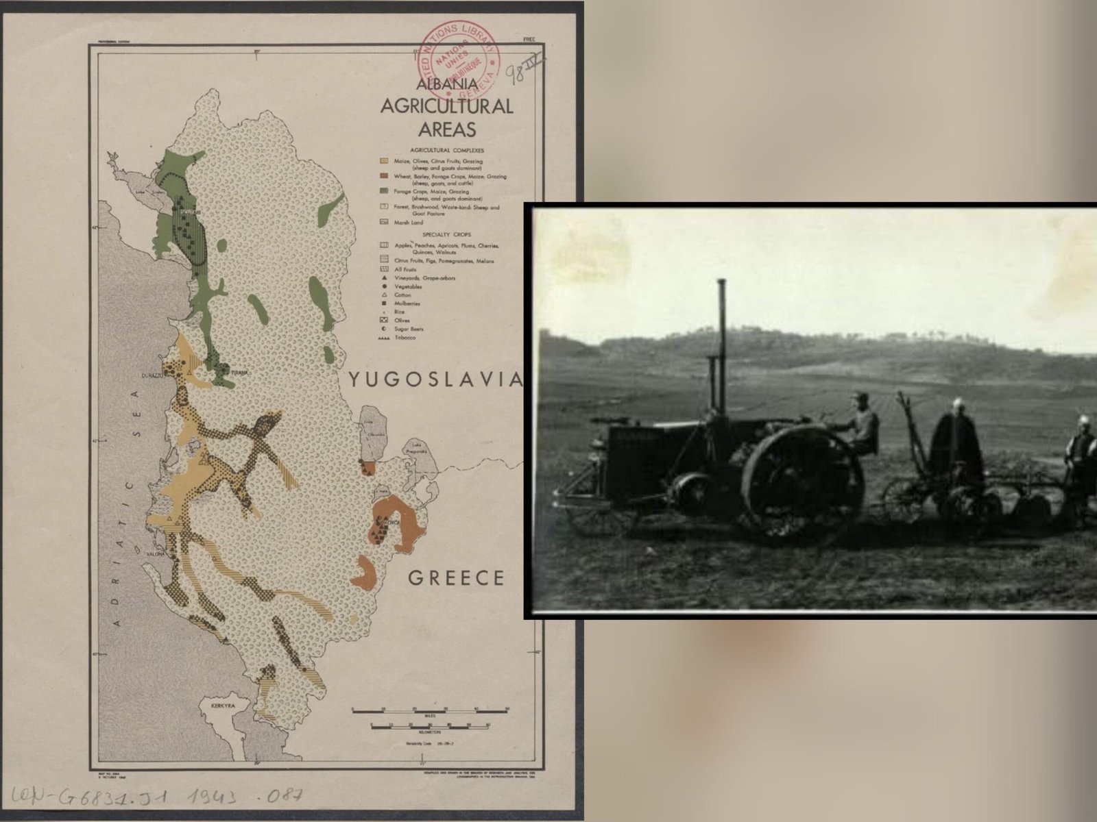 Harta e zonave bujqësore të Shqipërisë, e ruajtur në arkivat e Kombeve të Bashkuara në Gjenevë, si dhe fotografitë e eksperimenteve të para me mekanizimin bujqësor gjatë pushtimit italian në zonën e Vlorës (1916–1918), dëshmojnë për përpjekjet e hershme për modernizimin e bujqësisë shqiptare. Një prej këtyre pamjeve paraqet përdorimin e një traktori amerikan “J. I. Case” model 10–18, ku një ushtar italian dhe dy bujq shqiptarë realizojnë një eksperiment lërimi — një shenjë e kontaktit të parë të bujqësisë vendase me teknologjinë moderne.