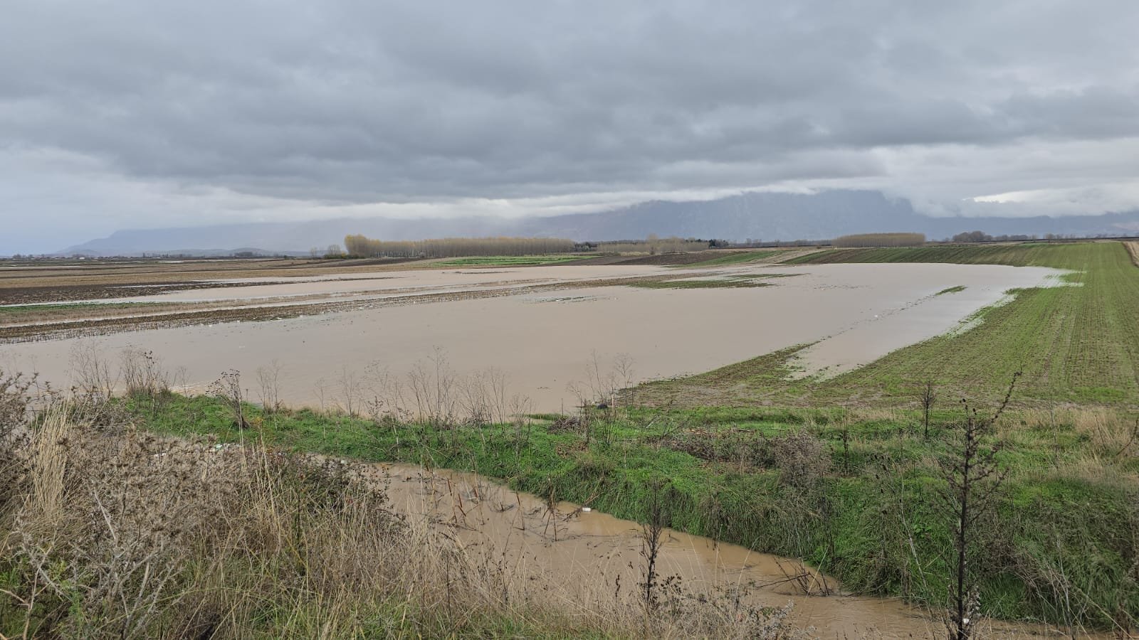 Tokat e përmbytura janë pjesë e ish kënetës së Maliqit ndërsa prej ditës së djeshme punonjësit e bord kullimit po punojnë për mbajtjen nën kontroll të kësaj situate