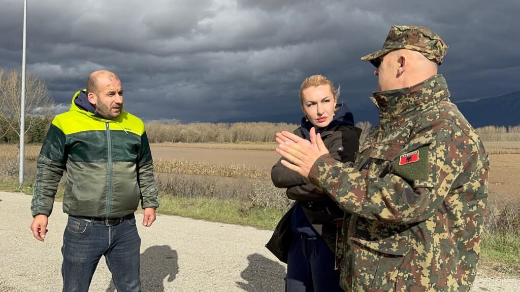 Drithas, Maliq — Deputetja e Korçës, Romina Kuko, ka inspektuar nga afër dëmet e shkaktuara nga reshjet e dendura në fushën e Maliqit, ku çarja e argjinaturës së lumit Devoll ka sjellë përmbytje të konsiderueshme në zonë.