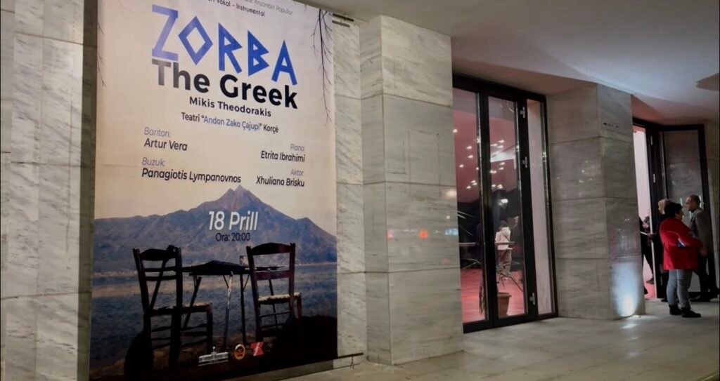 Në skenën e Teatri Andon Zako Çajupi janë rikthyer emocionet e muzikës helene përmes koncertit “ZORBA”, një mbrëmje artistike kushtuar veprës së kompozitorit legjendar Mikis Theodorakis.
